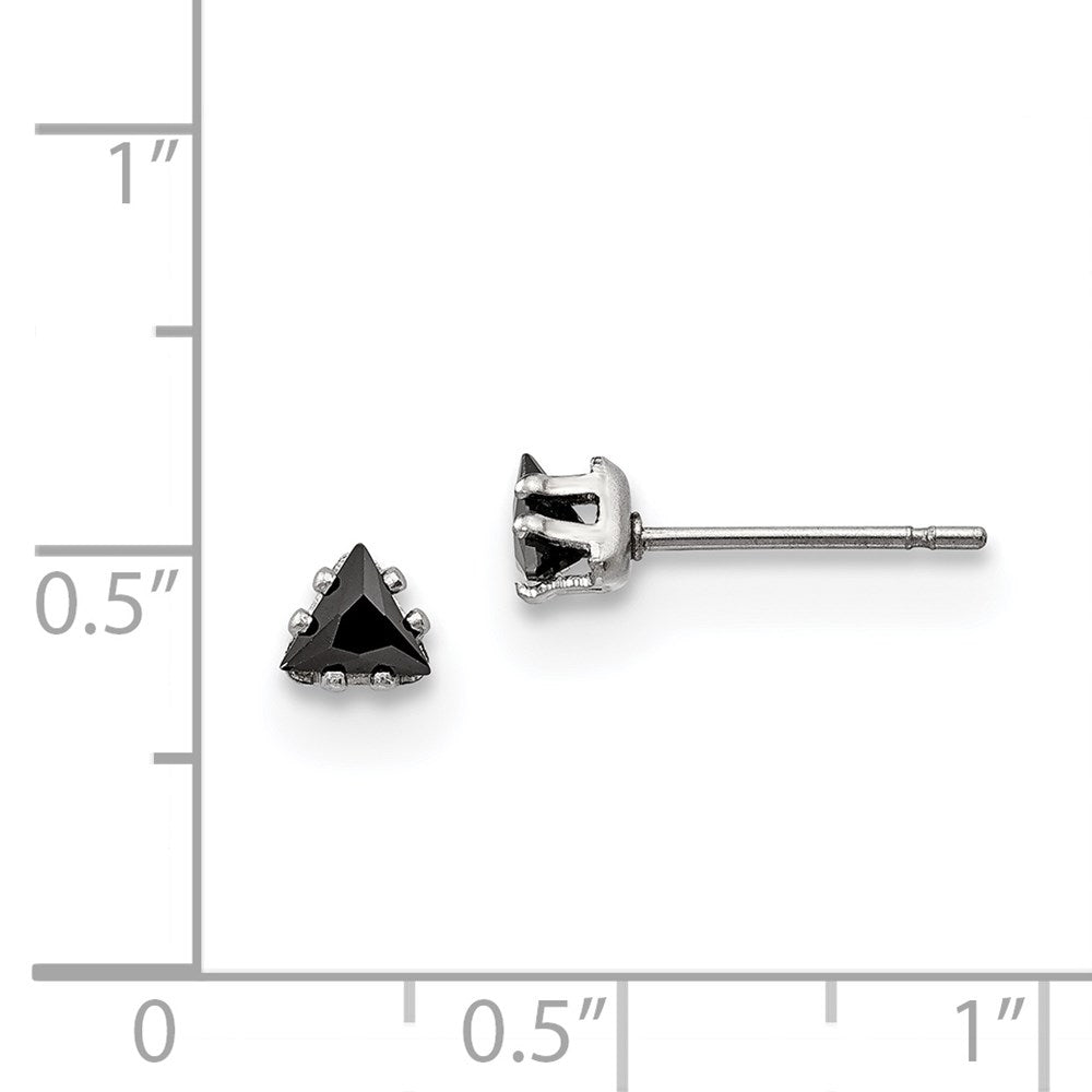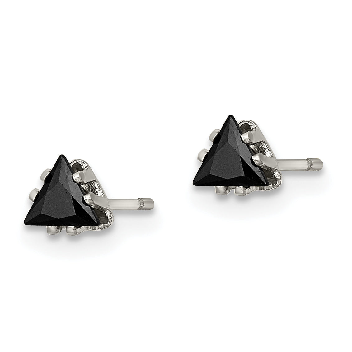 Stainless Steel 4mm Black Triangle Cubic Zirconia Stud Post Earrings
