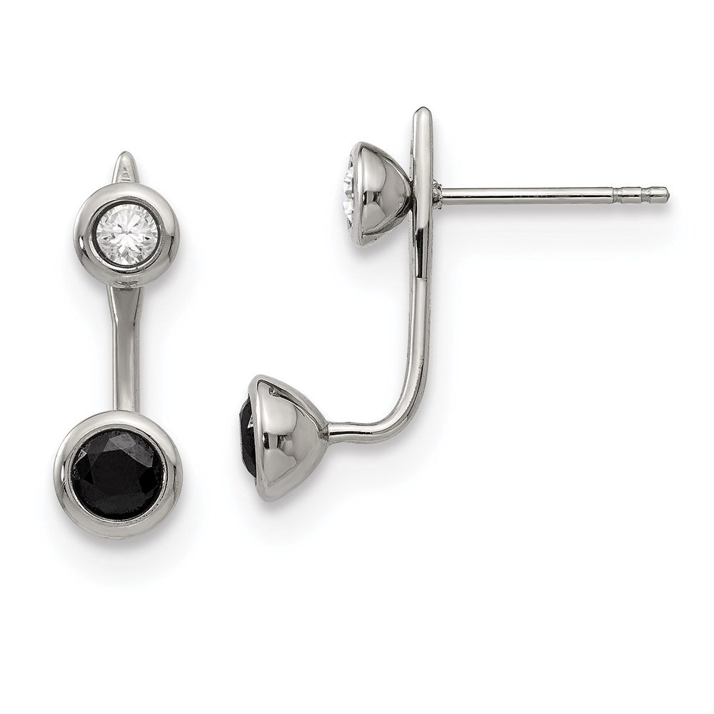 Stainless Steel Black and White Cubic Zirconia Post Earrings