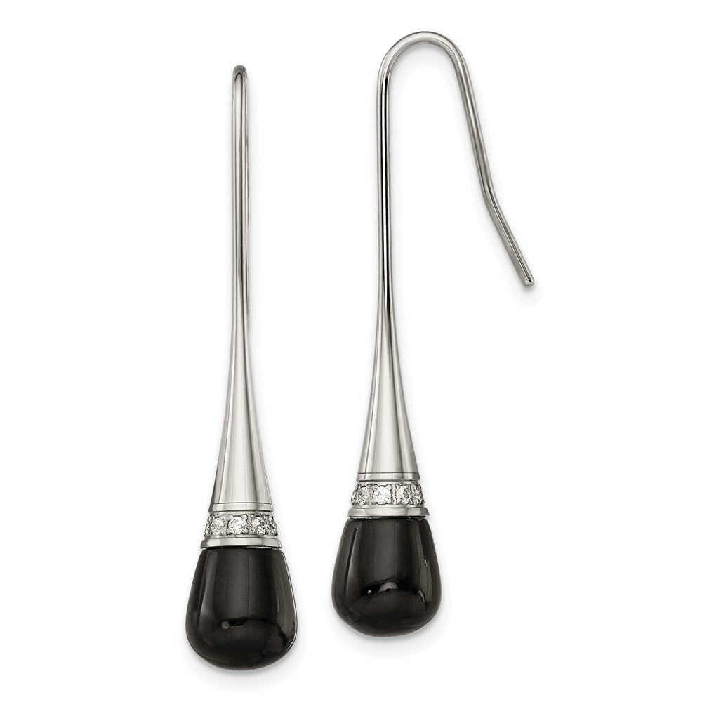 Stainless Steel Cubic Zirconia and Cat's Eye Dangle Earrings
