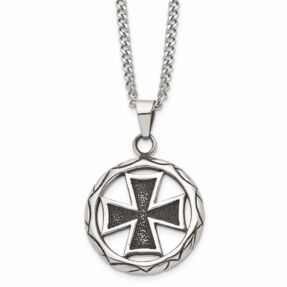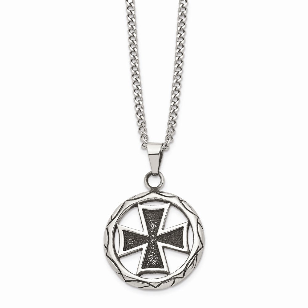 Men's Stainless Steel and Antiqued Cross in Circle Necklace, 22"