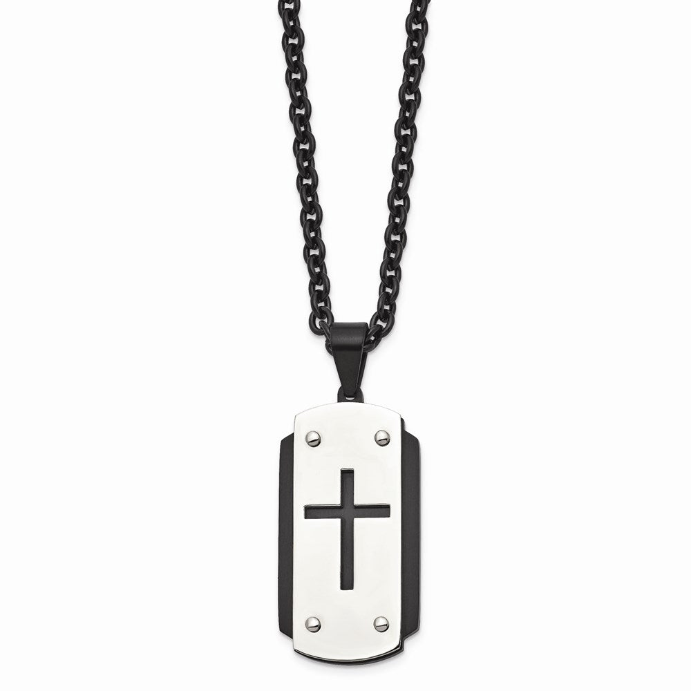Men's Stainless Steel Brushed Black Ion Plated Dog Tag Necklace, 24"