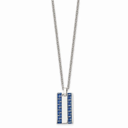 Men's Stainless Steel with Blue Carbon Fiber Inlay Small Dog Tag Necklace, 22"