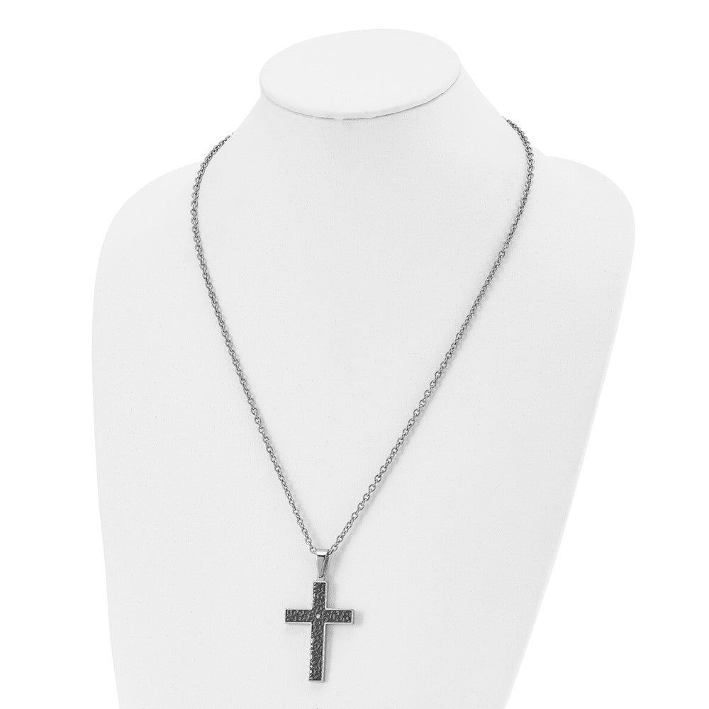 Men's Stainless Steel Black Ion Plated Textured Cubic Zirconia Cross Necklace, 24"