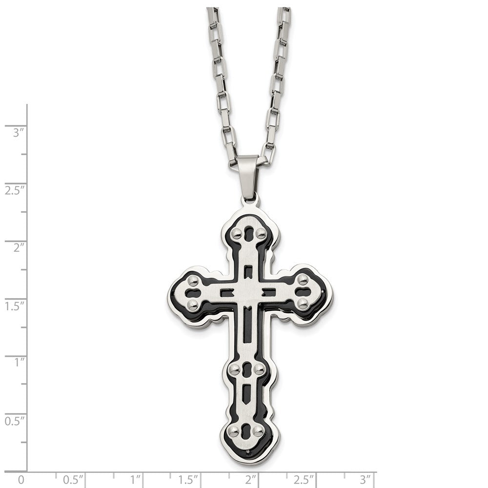 Men's Stainless Steel Brushed and Polished Black Ion Plated Cross Necklace, 24"