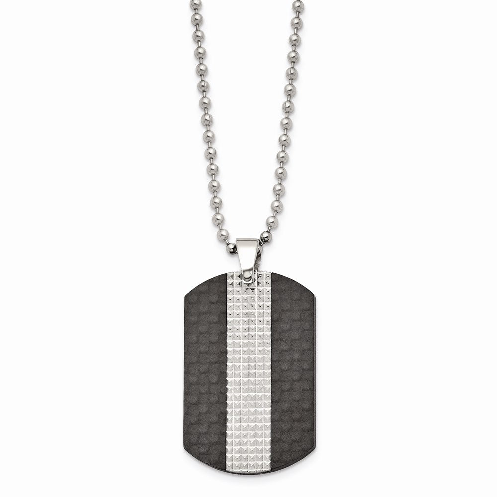 Men's Stainless Steel Studded Black Solid Carbon Fiber Dog Tag Necklace, 22"