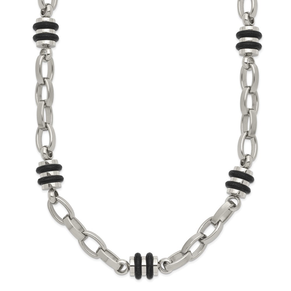 Men's Stainless Steel Rubber Accent Barrel Link Necklace, 22"