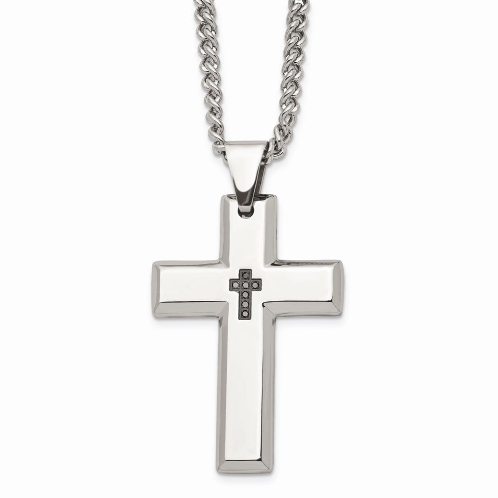 Men's Stainless Steel Black Diamonds Cross Necklace, 22"