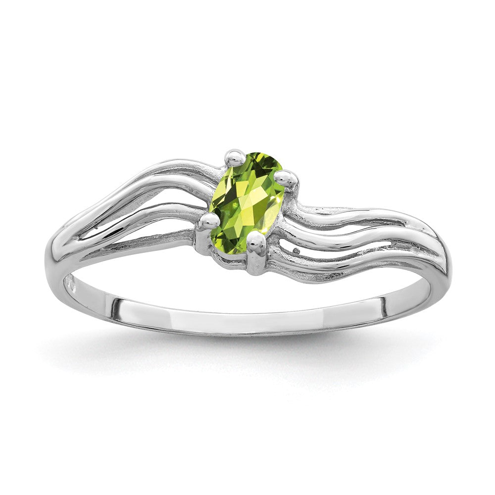 14k White Gold 5x3mm Oval Shape Peridot Ring, Size 6