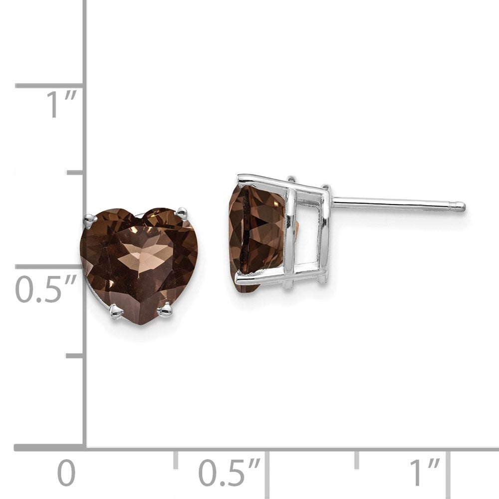 14k White Gold 8mm Heart Smoky Quartz Earrings