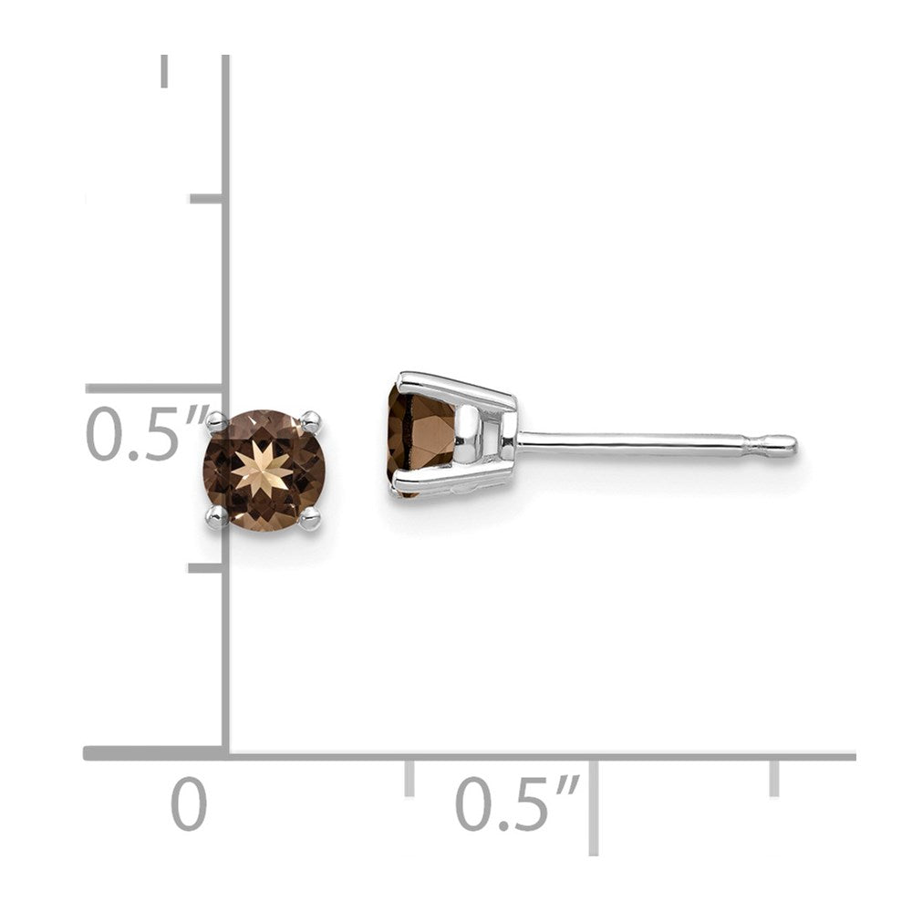14k White Gold 4mm Round Shape Smoky Quartz Earrings