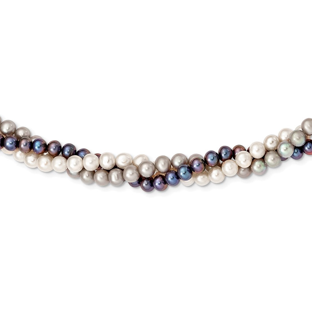 14k Yellow Gold Multi-Color Freshwater Cultured Pearl 3-strand Necklace (6-7mm), 18"
