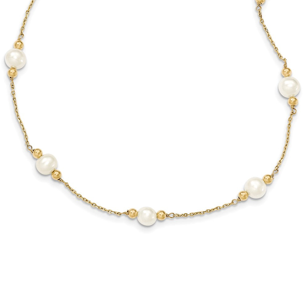 14k Yellow Gold White Near Round Shape Freshwater Cultured Pearl Bead 12-Station Necklace (5-6mm), 18"