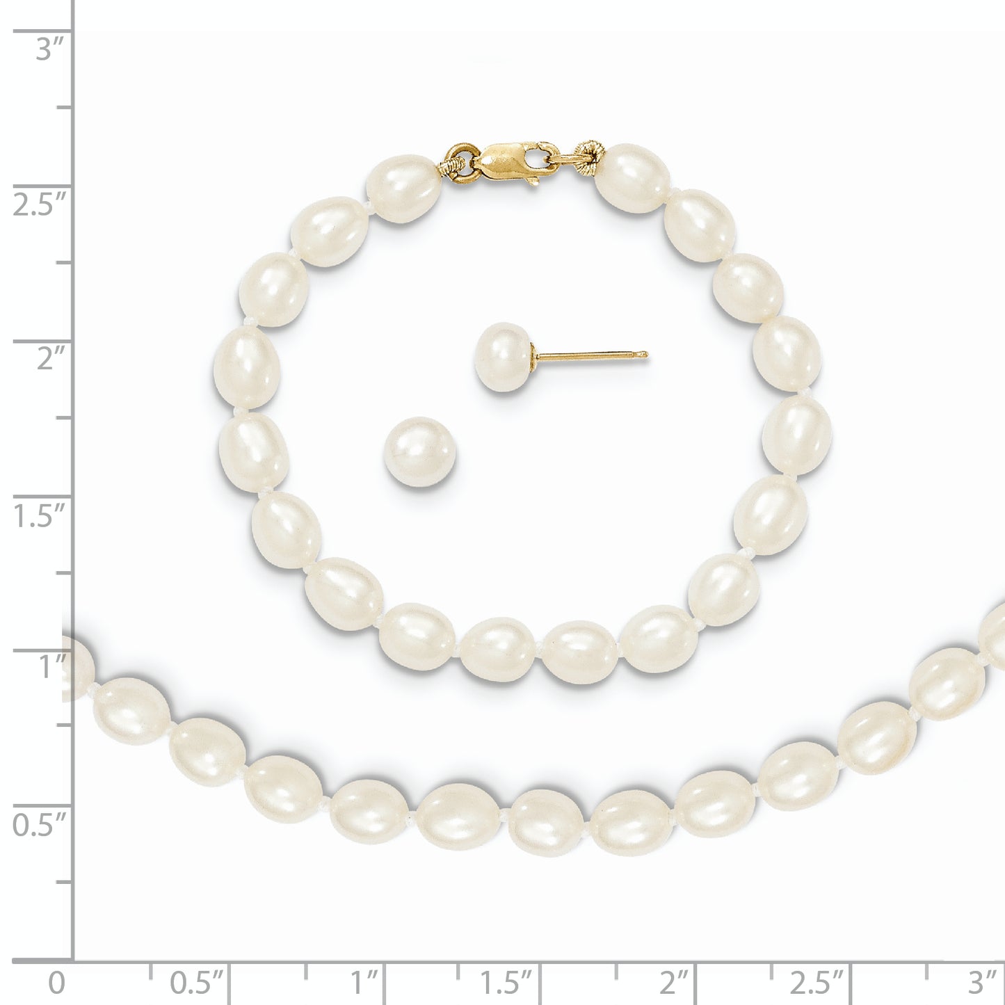 14k Yellow Gold Freshwater Cultured Pearl 5" Bracelet (5-6mm), 14" Necklace and Earrings Set