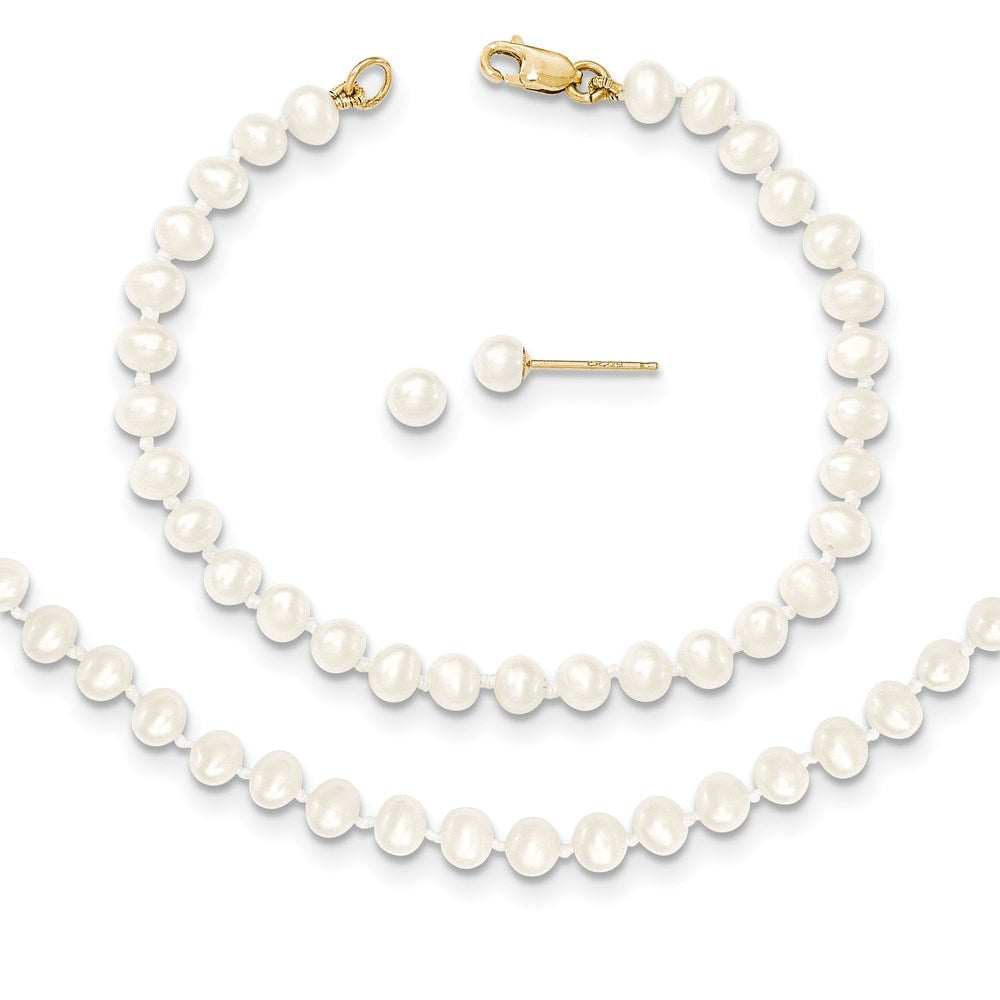 14k Yellow Gold Freshwater Cultured Pearl 14" Necklace (3-4mm), 5" Bracelet and Earrings Set (3-4mm)