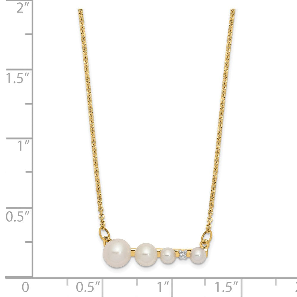 14k Yellow Gold White Round Shape Freshwater Cultured Graduated Pearl Diamond Necklace, 17"