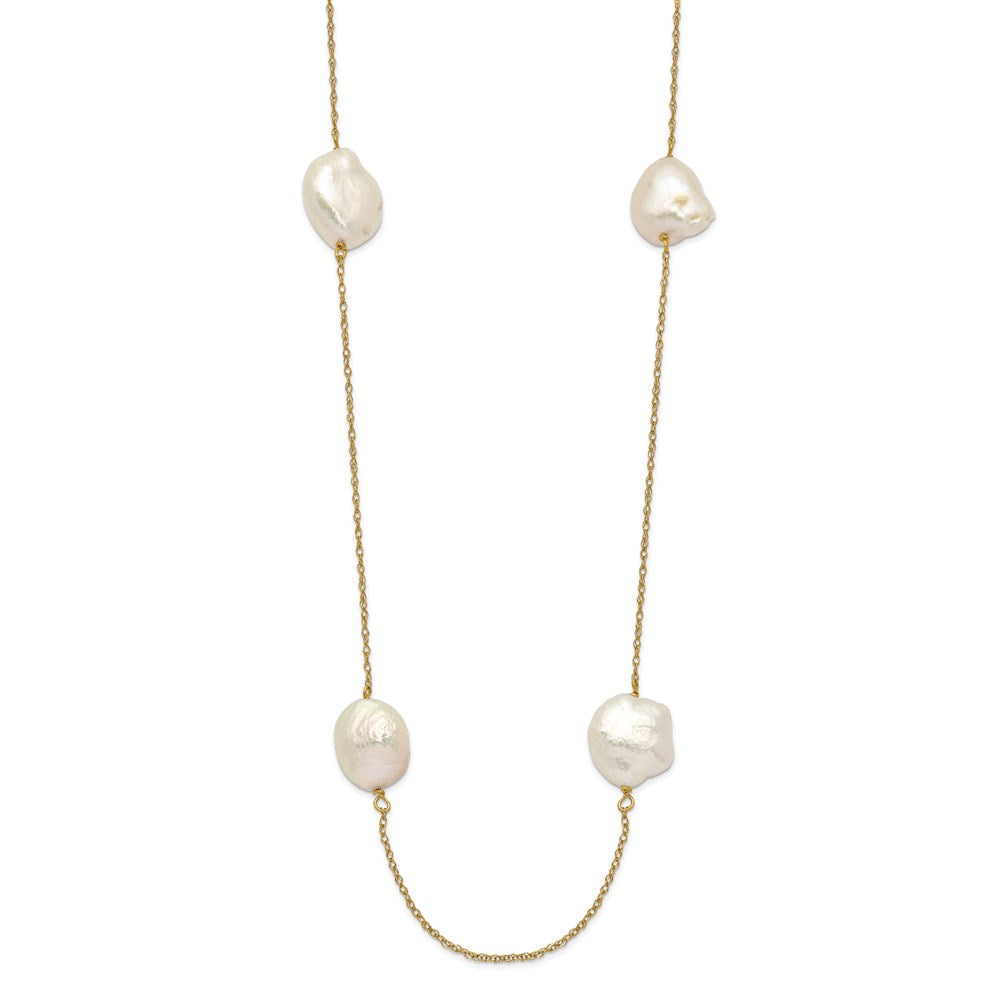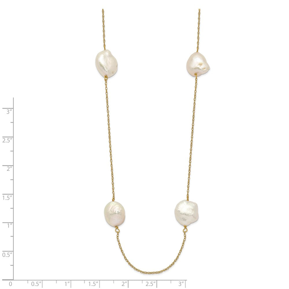 14k Yellow Gold White Keshi Freshwater Cultured Pearl 7-Station Necklace (10-11mm), 20"