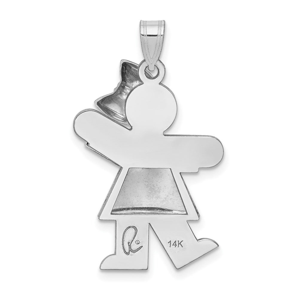 14k White Gold Puffed Young Female with Bow on Right Engraveable Charm Pendant