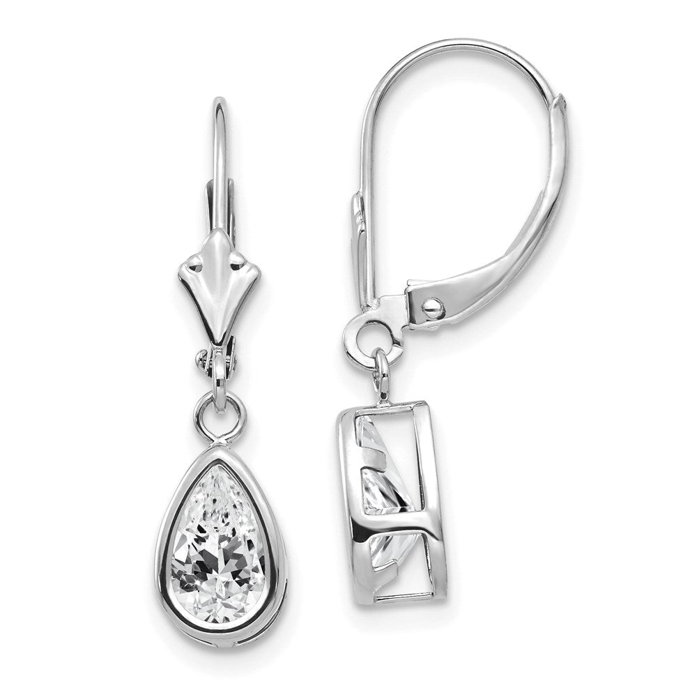 14k White Gold 8x5mm Pear Shape Cubic Zirconia Leverback Earrings