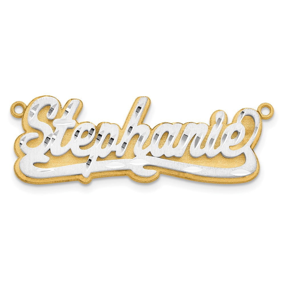 14k Two Tone Gold Satin Diamond Cut 3D Name Plate for Necklace