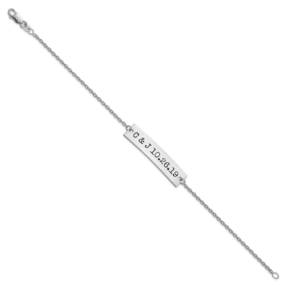 925 Sterling Silver Brushed Couple's Initials and Date Antiqued Bar Bracelet, 7.5"