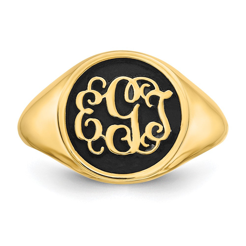 Gold Plated 925 Sterling Silver Casted High Antiqued or Sandblast Monogram Ring, Size 7