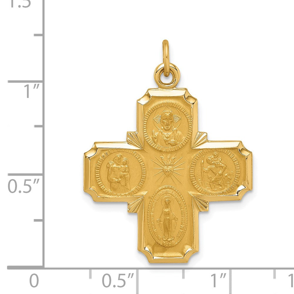 14k Yellow Gold Solid Polished/Satin Medium 4-Way Medal Pendant