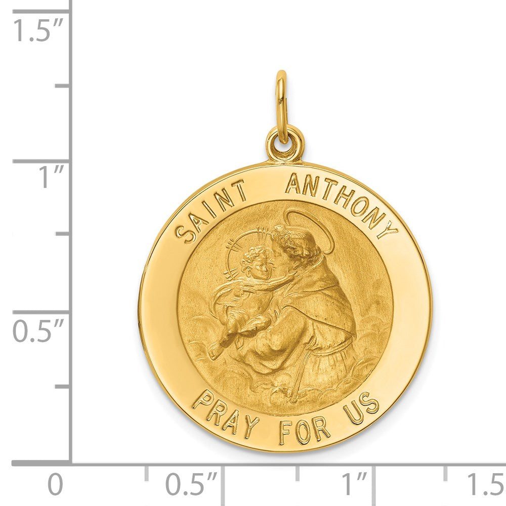 14k Yellow Gold Solid Polished/Satin Large Round Shape St. Anthony Medal Pendant