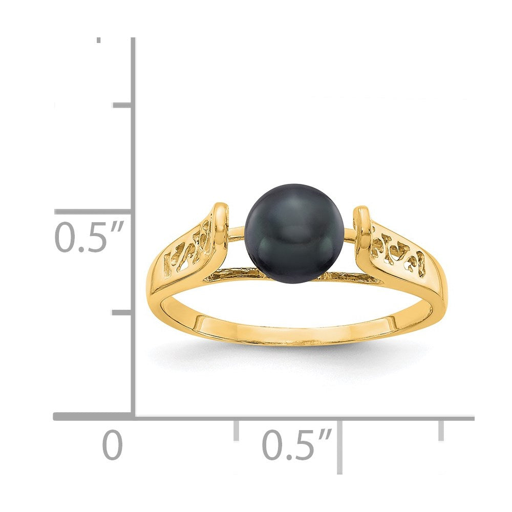14k Yellow Gold Black Freshwater Cultured Pearl Ring (6mm), Size 6