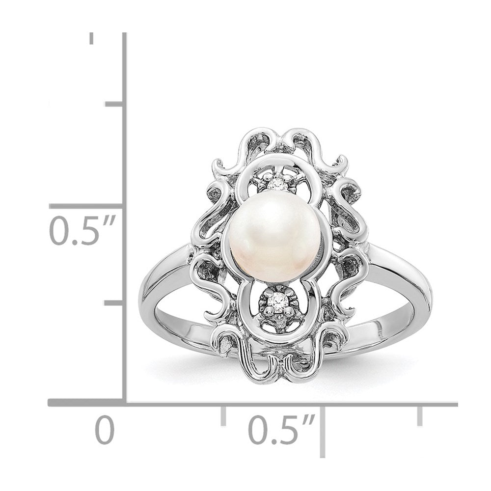 14k White Gold Freshwater Cultured Pearl and Diamond Ring, Size 6