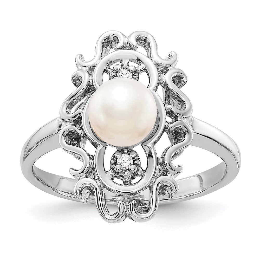 14k White Gold Freshwater Cultured Pearl Diamond Ring (5.5mm), Size 6