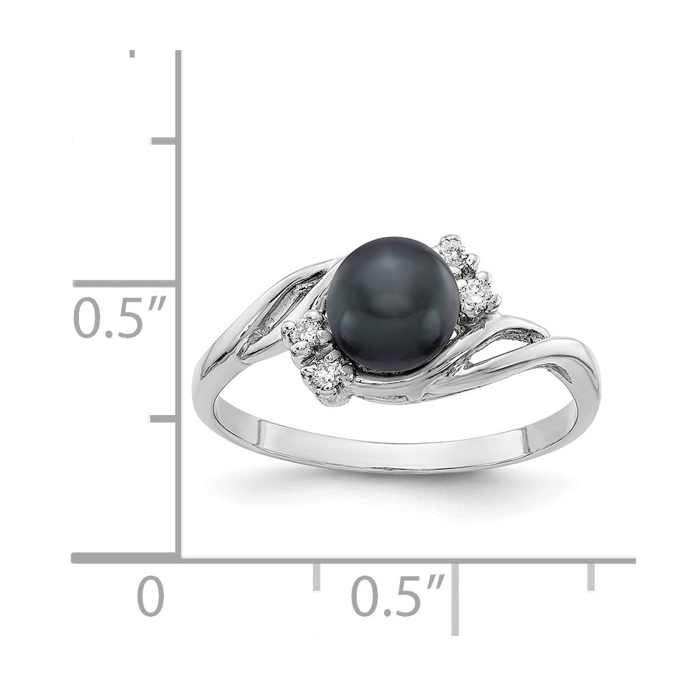 14k White Gold Black Freshwater Cultured Pearl Diamond Ring (6mm), Size 6
