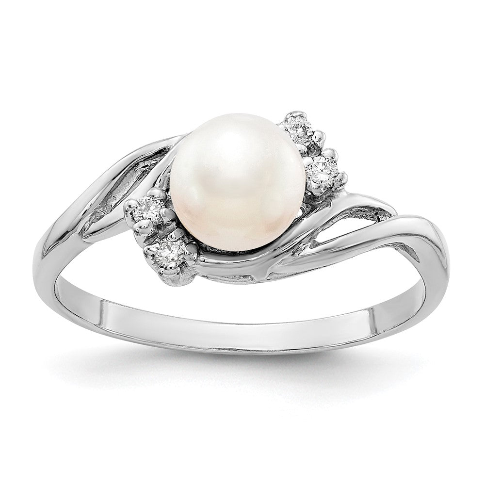 14k White Gold Freshwater Cultured Pearl Diamond Ring (6mm), Size 6