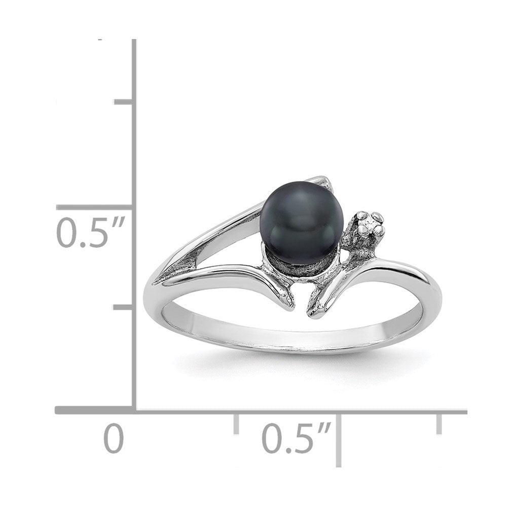 14k White Gold Black Freshwater Cultured Pearl Diamond Ring (5mm), Size 6