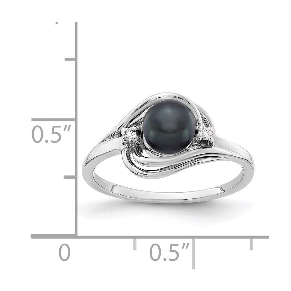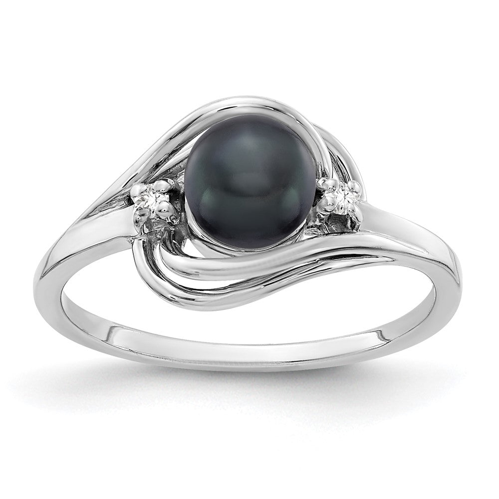 14k White Gold Black Freshwater Cultured Pearl Diamond Ring (5.5mm), Size 6