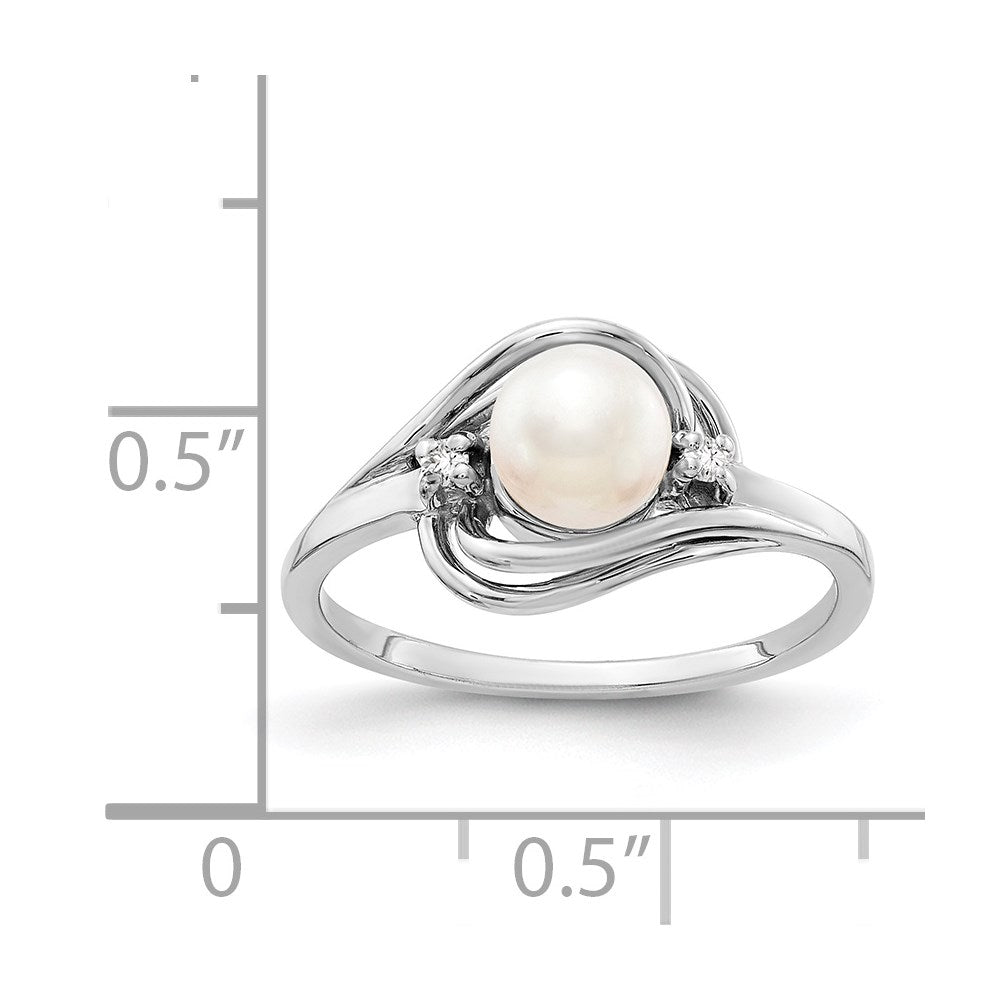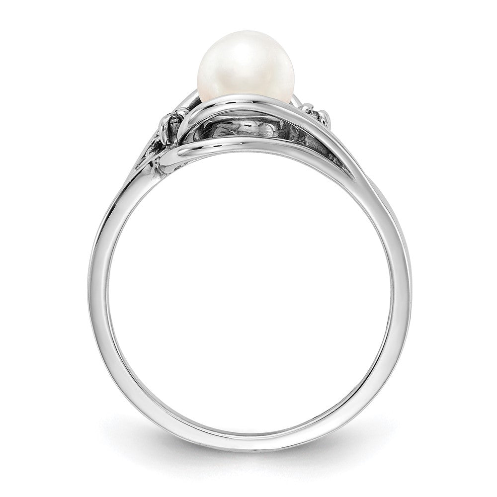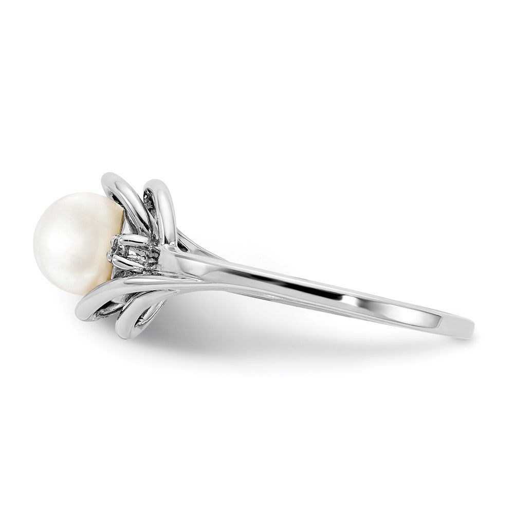 14k White Gold Freshwater Cultured Pearl Diamond Ring (5.5mm), Size 6