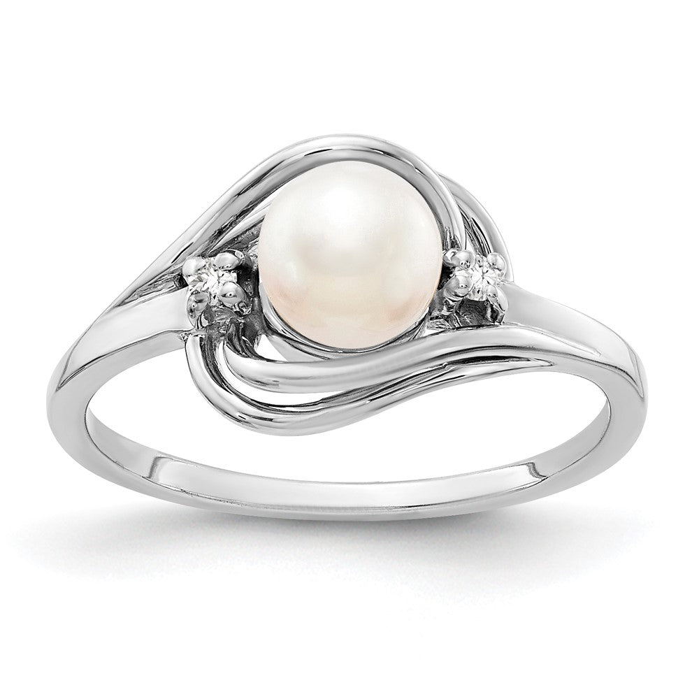 14k White Gold Freshwater Cultured Pearl Diamond Ring (5.5mm), Size 6