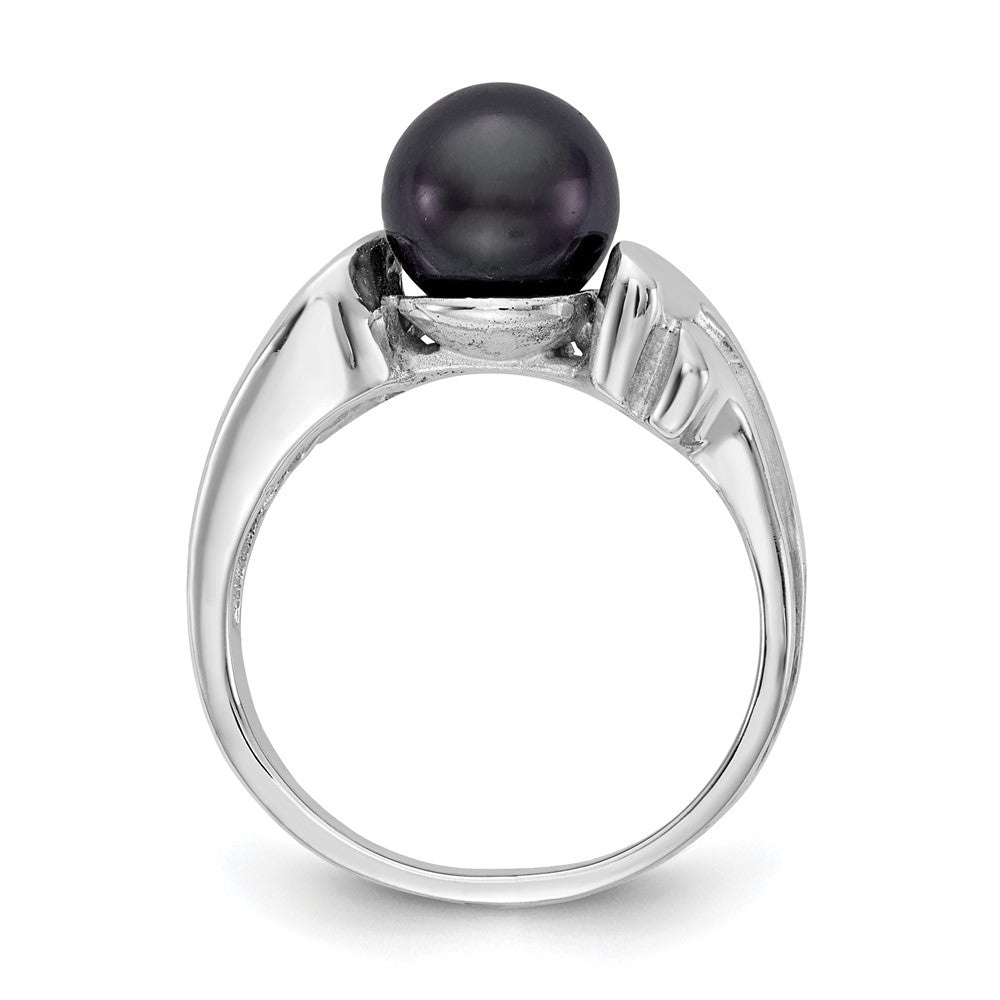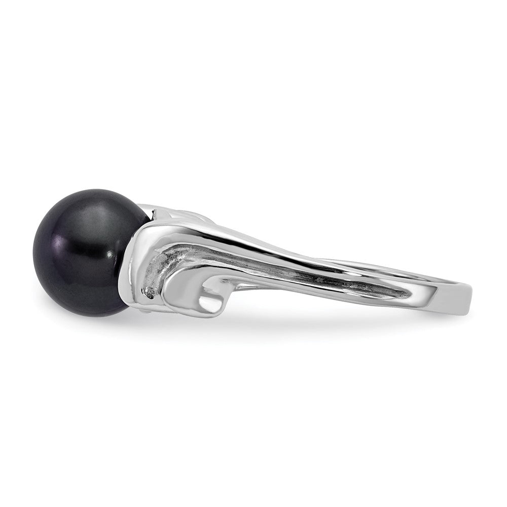 14k White Gold Black Freshwater Cultured Pearl Ring (7mm), Size 6