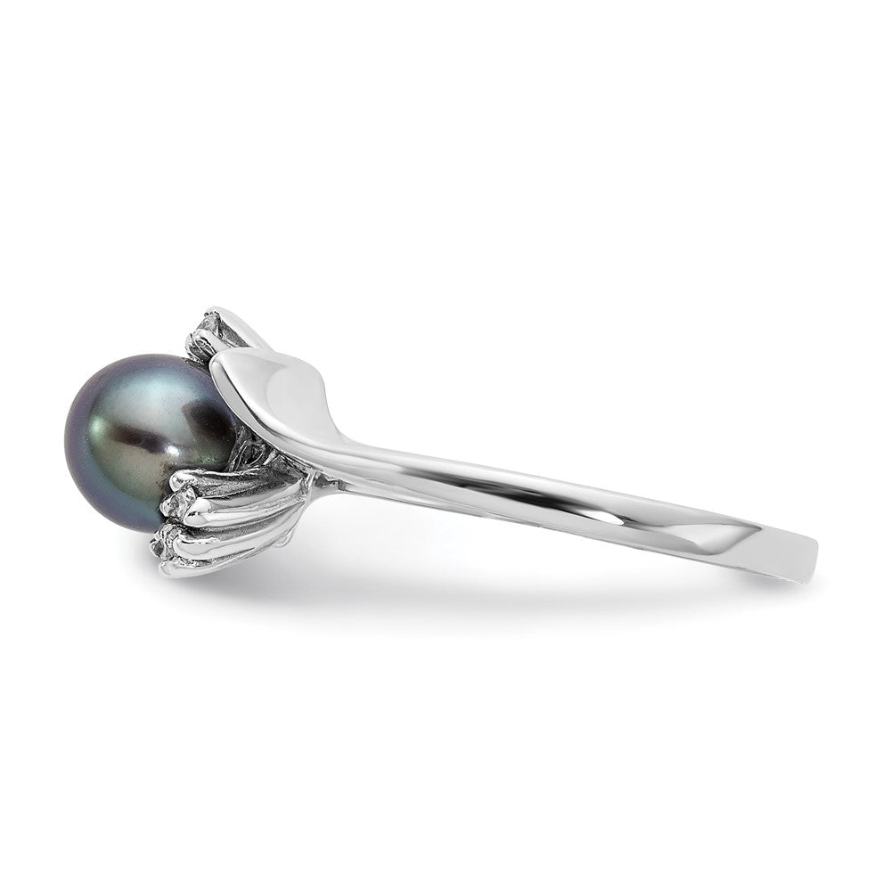 14k White Gold Black Freshwater Cultured Pearl Diamond Ring (6mm), Size 6