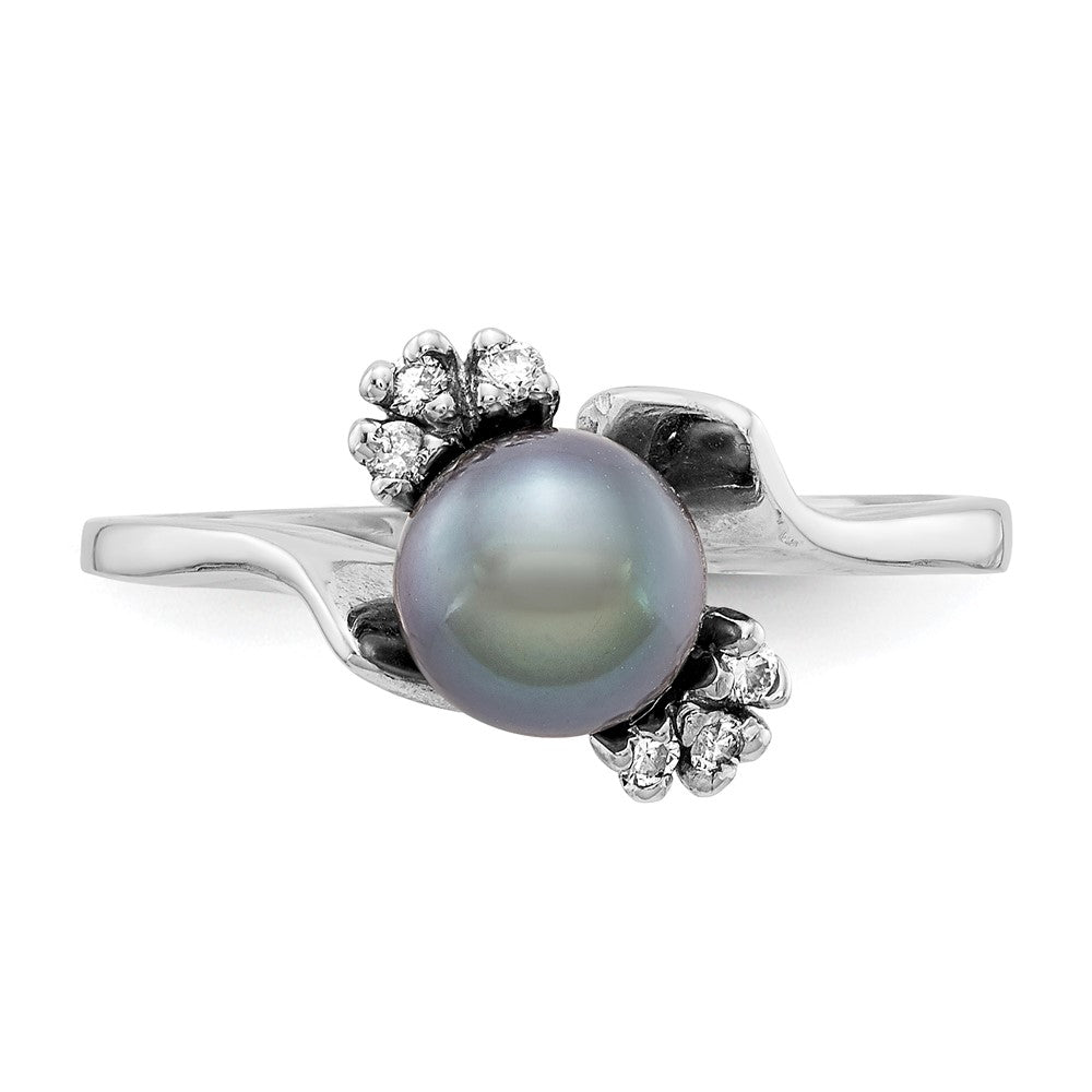 14k White Gold Black Freshwater Cultured Pearl Diamond Ring (6mm), Size 6