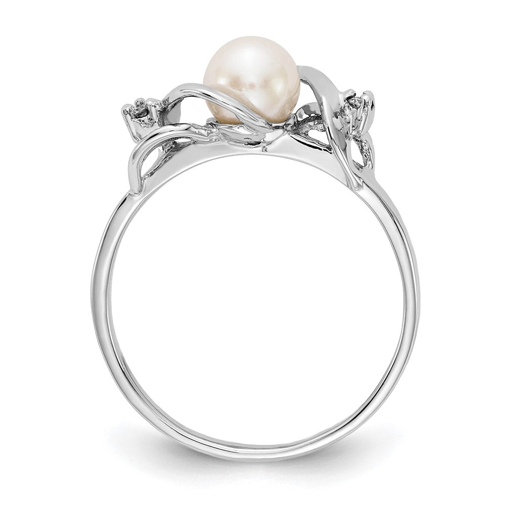 14k White Gold Freshwater Cultured Pearl Diamond Ring (5.5mm), Size 6