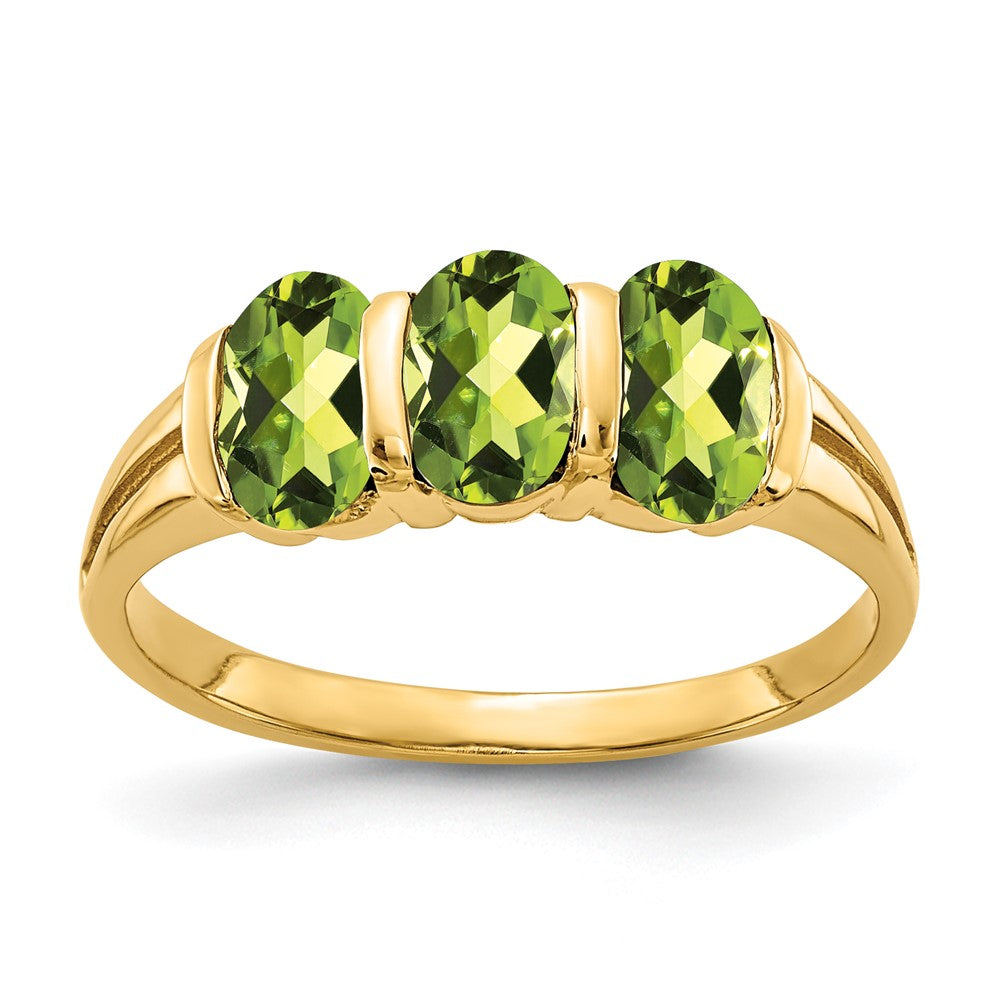 14k Yellow Gold 6x4mm Oval Shape Peridot Ring, Size 6