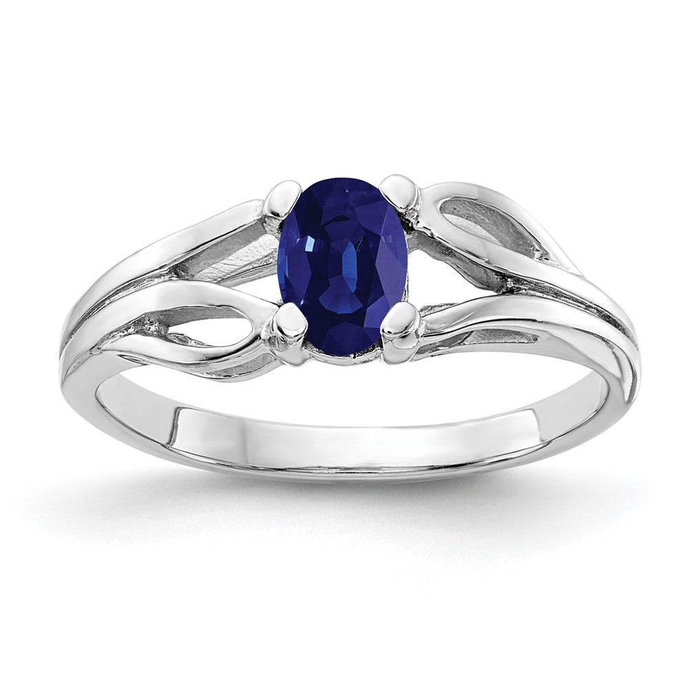 14k White Gold 6x4mm Oval Shape Blue Sapphire Ring, Size 6