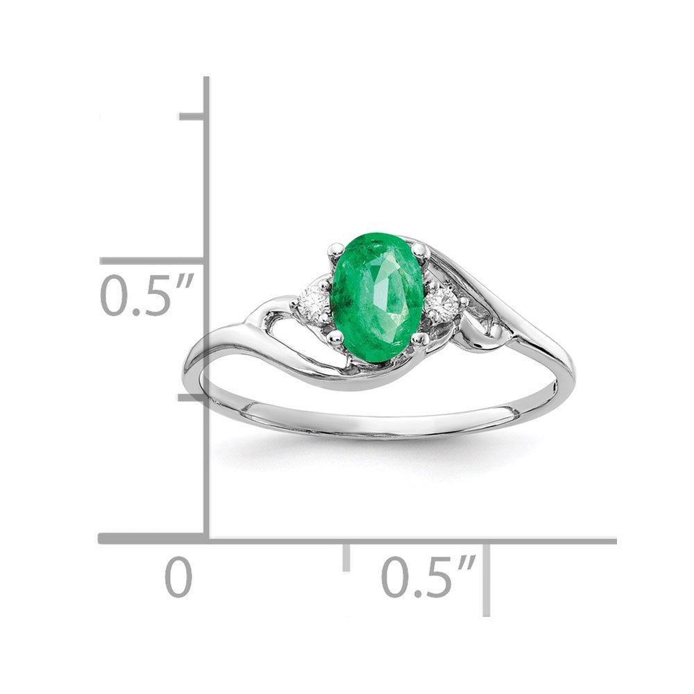 14k White Gold 6x4mm Oval Shape Emerald Diamond Ring, Size 6