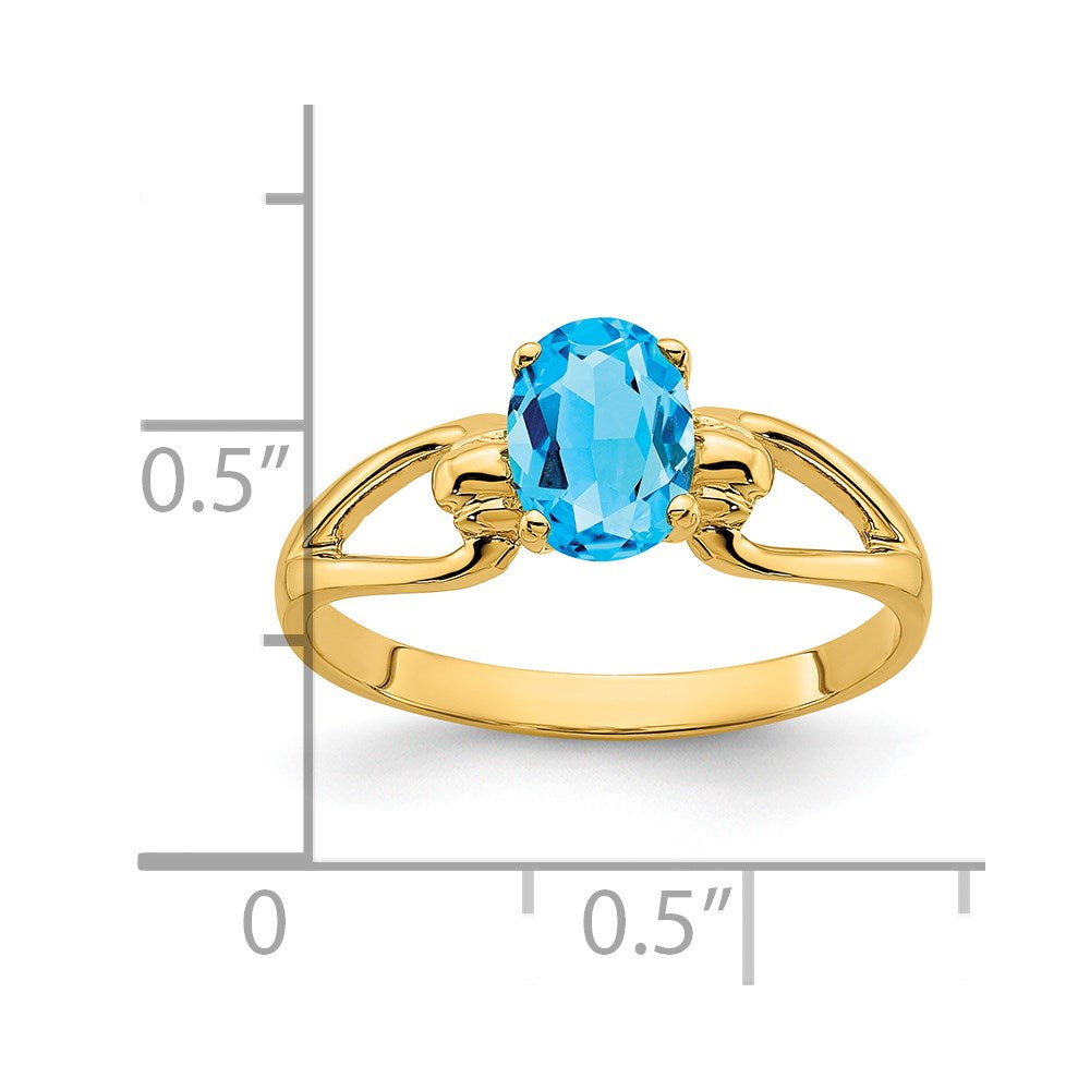 14k Yellow Gold 7x5mm Oval Shape Swiss Blue Topaz Ring, Size 6