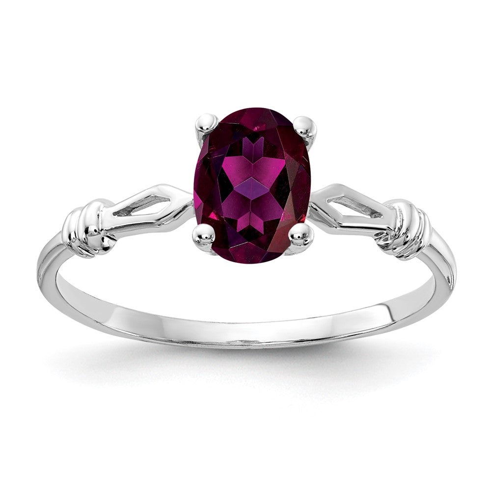 14k White Gold 7x5mm Oval Shape Rhodolite Garnet Ring, Size 6