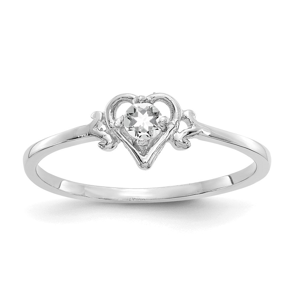 14k White Gold White Topaz Birthstone Heart Ring, Size 7